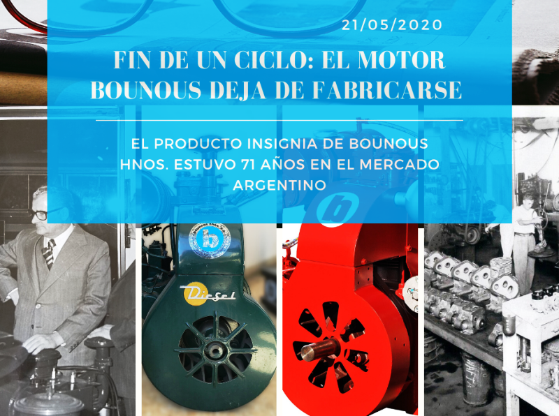 El producto insignia de Bounous Hnos. estuvo 71 años en el mercado argentino y este año 2020 marca para la empresa un punto de inflexión al tomarse la decisión de cesar la producción del motor Bounous. El producto representó para la compañía un impulso para encontrar en el sector reconocimiento y prestigio.