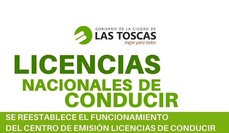 Desde el gobierno de la ciudad de Las Toscas, informan que se reestablece el funcionamiento del centro de emisión de licencias de conducir.