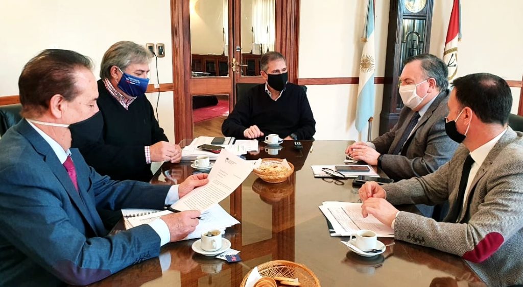 Acompañado por los legisladores Felipe Michlig, Germán Giacomino y Lisandro Enrico, el senador Orfilio Marcón se reunió esta mañana con dos ministros: de Gobierno, Esteban Borgonovo, y de Gestión Pública, Rubén Michlig.
