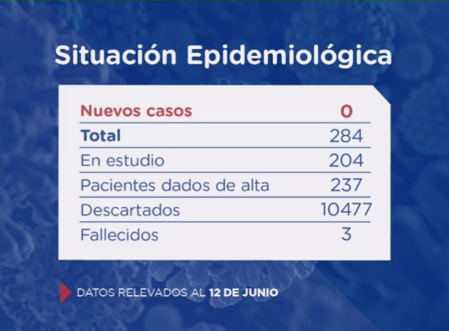 La Región de Salud Reconquista informa a la población que en el día de hoy, viernes 12 de junio, no se han confirmado nuevos casos de COVID-19, en el Departamento General Obligado.