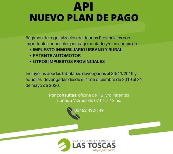 Como consecuencia de la Emergencia Sanitaria por el COVID 19 que rige en el territorio Nacional y con el objeto de facilitar a los contribuyentes el cumplimiento de sus obligaciones tributarias, se establece un Régimen de Regularización de deudas con importantes beneficios por pago contado y/o en cuotas, correspondientes a impuesto inmobiliario urbano – rural, patente automotor, entre otros impuestos provinciales.