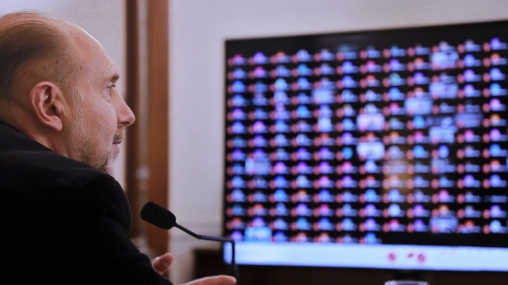 “Queríamos conectarnos con todos ustedes, tener una actualización de la situación sanitaria en la provincia al día de hoy y definir algunas acciones comunes a desarrollar”, afirmó el gobernador Omar Perotti este lunes al reunirse, mediante videoconferencia, con intendentes y presidentes comunales de todo el territorio provincial para implementar mayores medidas restrictivas y aunar esfuerzos.