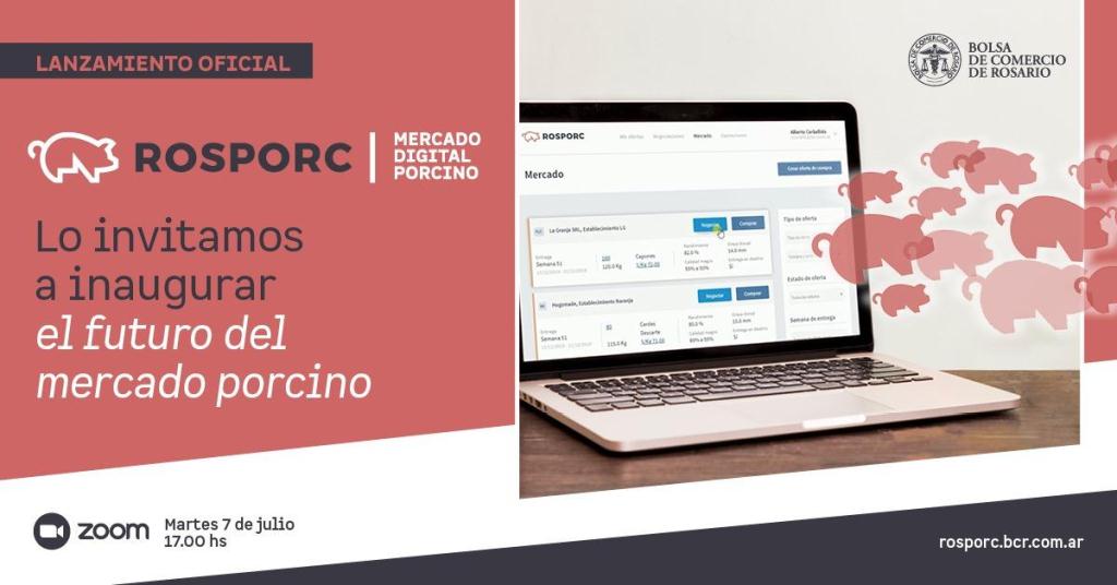 El próximo martes 7 de julio, a las 17 hs., la Bolsa de Comercio de Rosario realizará el lanzamiento oficial de Rosporc, la primera plataforma digital de negociación de ganado porcino.