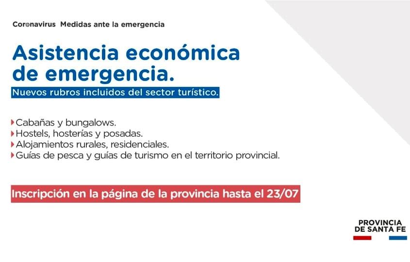 Los interesados deben completar el formulario de solicitud hasta el 23 de julio, ingresando al portal: santafe.gob.ar/ms/covid19 en el Link: Programa Asistencia Económica de Emergencia Turismo.