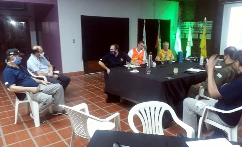 El intendente Enrique Paduán, acompañado por el secretario de Gobierno y Seguridad de la Municipalidad de Villa Ocampo, Eduardo José, mantuvieron una reunión en el Aero Club Villa Ocampo con los responsables del operativo que se llevará a cabo en la zona de islas para atacar los focos de incendios que se están registrando en estos momentos en el valle del Paraná.