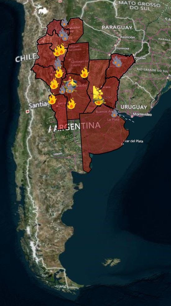 Al momento de elaborarse el siguiente informe se registran las siguientes provincias afectadas por incendios en nuestro país.