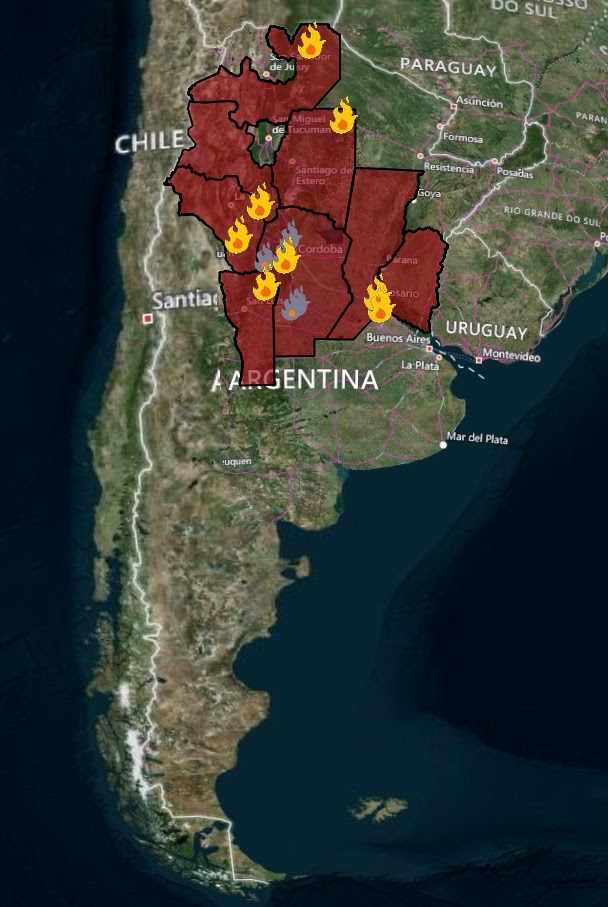 Al momento de elaborarse este informe se registran las siguientes provincias afectadas por incendios en nuestro país.