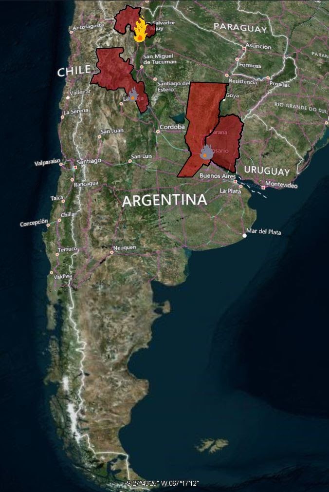 Al momento de elaborarse este informe se registran las siguientes provincias afectadas por incendios en nuestro país .
