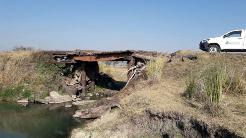 Acopio de materiales para reconstruir el deteriorado puente sobre “El Salado” (paraje Villa Adela); para lo cual se acondicionarán caminos alternativos, previendo un tiempo de obra de entre 15 y 30 días.