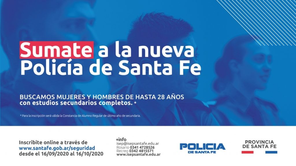 El gobierno provincial, a través del Ministerio de Seguridad, abre la inscripción para la carrera de Técnico Superior en Seguridad Pública y Ciudadana para formar parte de la Policía de la provincia de Santa Fe.