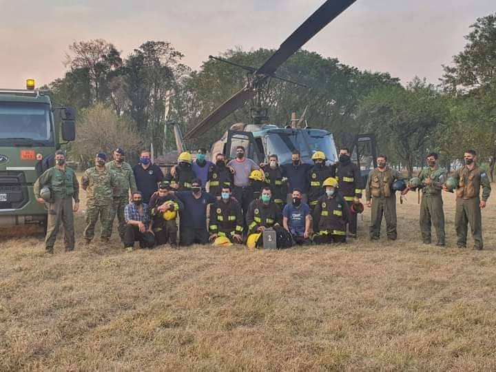 Se utilizaron un avión hidratante y para el traslado de los bomberos un helicóptero del Ejército Argentino, trabajando coordinadamente con los responsables del Área de Manejo del Fuego Nacional y de la provincia de Santa Fe.