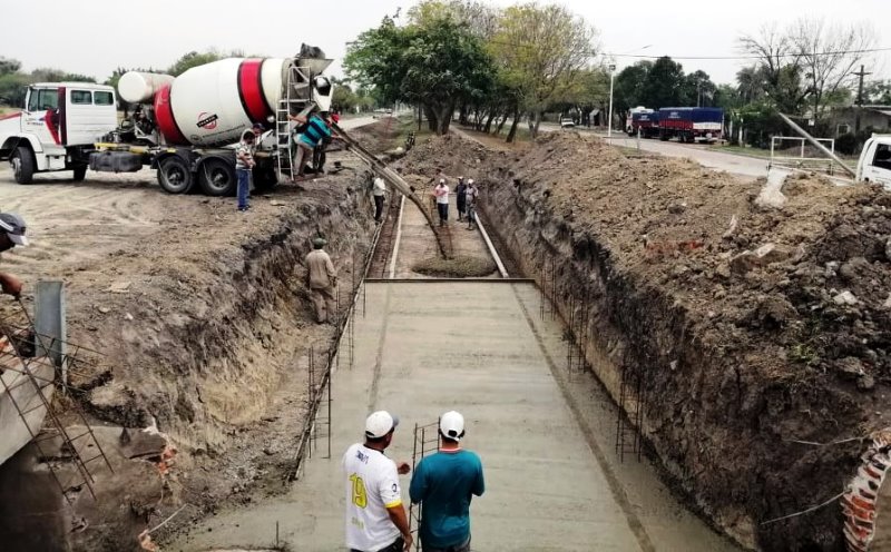 Con el objetivo de finalizar la pavimentación en la intersección de los bulevares Urquiza y Obligado, con la construcción de un distribuidor de tránsito tipo rotonda, en estos momentos está en obra un puente de 40 metros de largo por 3,20 metros de luz que estará ubicado por debajo de la misma para conectar los desagües pluviales de ambas arterias.