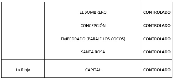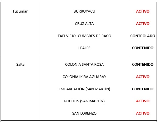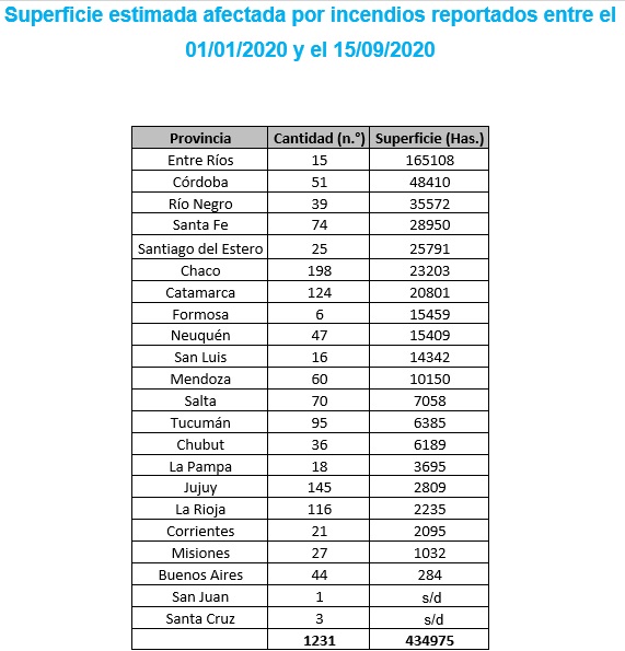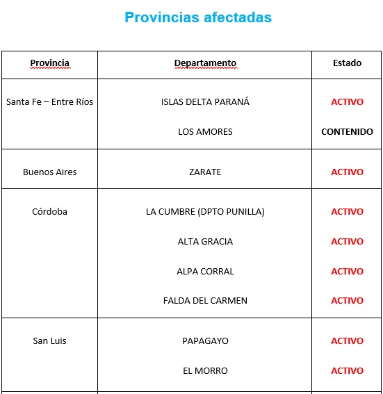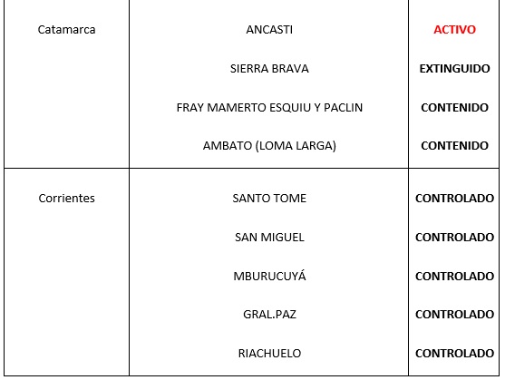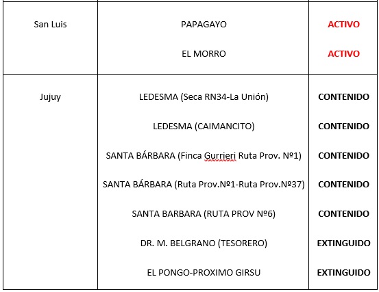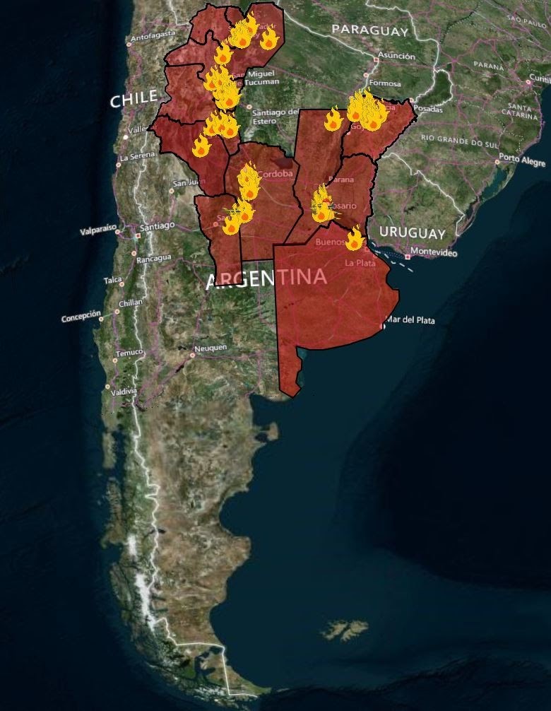 Al momento de elaborarse este informe se registran las siguientes provincias afectadas por incendios en nuestro país.