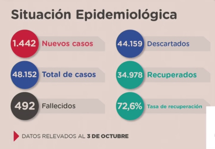 El Ministerio de Salud de Santa Fe, a través de la Dirección Provincial de Epidemiología, informa a la población que en el día de la fecha se han confirmado 1.442 casos nuevos de COVID-19, en el territorio provincial.