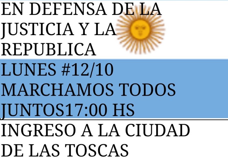 Un grupo reducido de vecinos tosquenses se reunieron en el ingreso sur a Las Toscas, reclamando justicia y República.