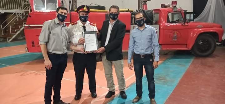 En Villa Ocampo, los concejales Javier Aquino y Gustavo Volkart hicieron llegar el aporte a la Asociación Bomberos Voluntarios, en el marco del 50° aniversario de la creación de su cuerpo activo de esa institución.