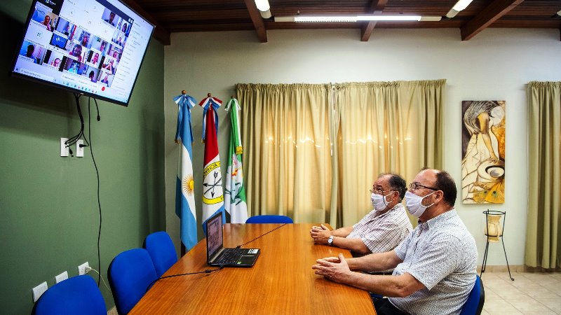 El intendente Enrique Paduán, acompañado por el secretario de Sistemas Productivos y Medio Ambiente, Pablo Díaz, formaron parte de la videoconferencia en la que participaron el presidente de la Nación, Alberto Fernández; el ministro del Interior, Wado de Pedro; el secretario de Municipios, Avelino Zurro; el subsecretario de Relaciones Municipales, Tato Giles; la directora de Asuntos Municipales, Johanna Farella; la directora del Observatorio Municipal, Mariana Alcoba; y 160 intendentes de todo el país.