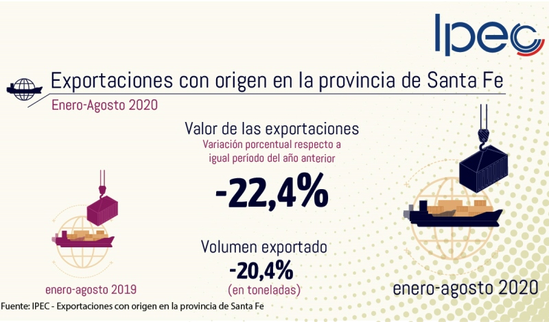 El Instituto Provincial de Estadística y Censos informa que se encuentra disponible el informe «Exportaciones con origen en la Provincia de Santa Fe» correspondiente a enero – agosto 2020.