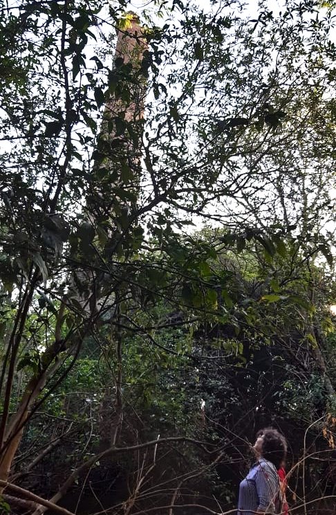 La responsable de los museos pertenecientes a la Secretaría de Cultura y Comunicación de la Municipalidad de Villa Ocampo, Estela Yaccuzzi, visitó el sitio donde se encuentra la histórica chimenea que perteneció a la destilería de alcohol del suizo Rudolf Siegrist Baader.