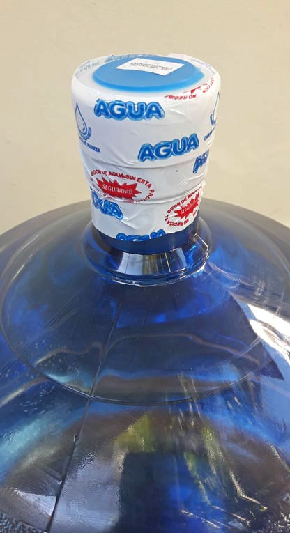 COTELVO Servicios recomienda controlar que el bidón retornable de agua mineralizada envasada «Jaauka» cuente con el precinto (faja plástica) que cubre el contorno de su pico y la etiqueta que informa la fecha de elaboración y vencimiento.