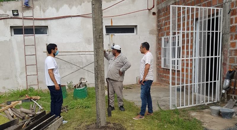 Por otro lado estuvieron en el lugar de obra de una galería abierta de alrededor de 70 metros cuadrados que se construye como un espacio abierto y ventilado y que conecta las partes traseras del tinglado del gimnasio y el sector de cocina y baño.
