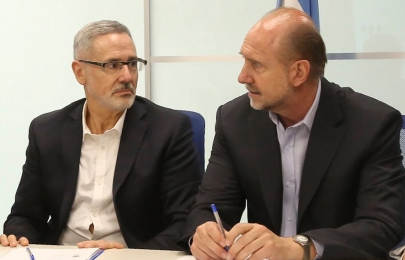 El gobernador y el ministro, compartieron el viaje a la provincia de Río Negro, que realizaron el pasado lunes con motivo de la firma de un convenio en materia de seguridad que suscribió la provincia de Santa Fe con el INVAP.