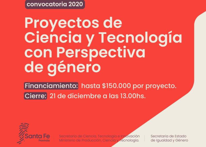 El Gobierno de Santa Fe, a través de la Secretaría de Estado de Igualdad y Género y el Ministerio de Producción, Ciencia y Tecnología, abrió la convocatoria a proyectos de ciencia y tecnología con perspectiva de género, destinado a grupos de investigación e instituciones públicas o privadas sin fines de lucro del sistema ciencia, tecnología e innovación, radicadas en la provincia de Santa Fe.