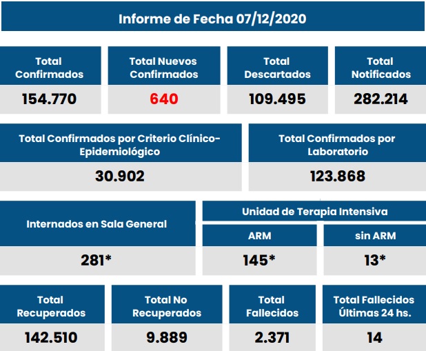 2020-12-07-19.30-hs-Parte-MSSF-CoronavirusProvincia Santa Fe informó 640 nuevos casos y 14 fallecidos de Covid-19