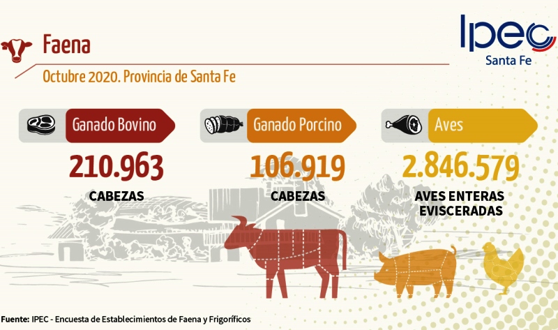 El Instituto Provincial de Estadística y Censos comunica que se encuentra disponible el informe de Faena en la provincia de Santa Fe correspondiente al mes de octubre.