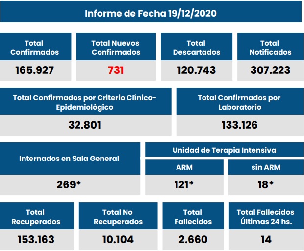 2020-12-19 19.30 hs-Parte MSSF CoronavirusProvincia Santa Fe informó 731 nuevos casos y 14 fallecidos de Covid-19