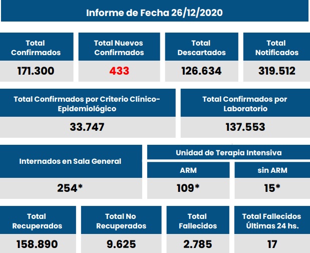 2020-12-26_Parte_MSSF_CoronavirusProvincia Santa Fe informó 433 nuevos casos y 17 fallecidos de Covid-19