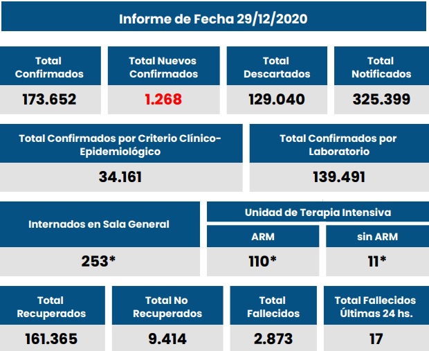 2020-12-29_Parte_MSSF_CoronavirusProvincia Santa Fe informó 1.268 nuevos casos y 17 fallecidos de Covid-19