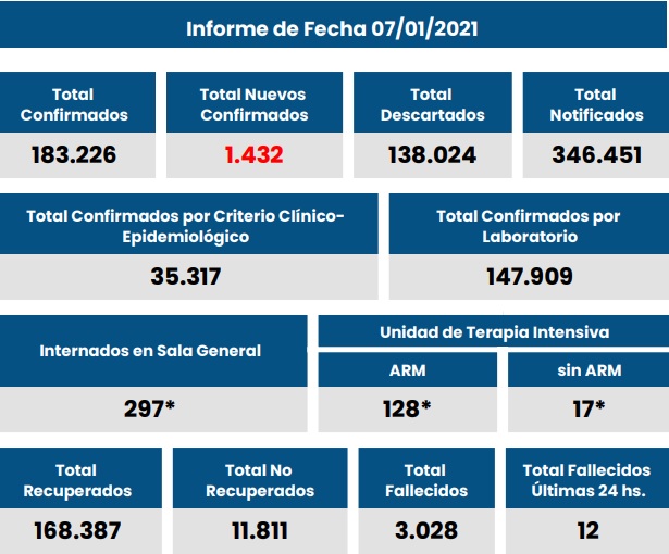 2021-01-07_Parte_MSSF_CoronavirusProvincia Santa Fe informó 1.432 nuevos casos y 12 fallecidos de Covid-19