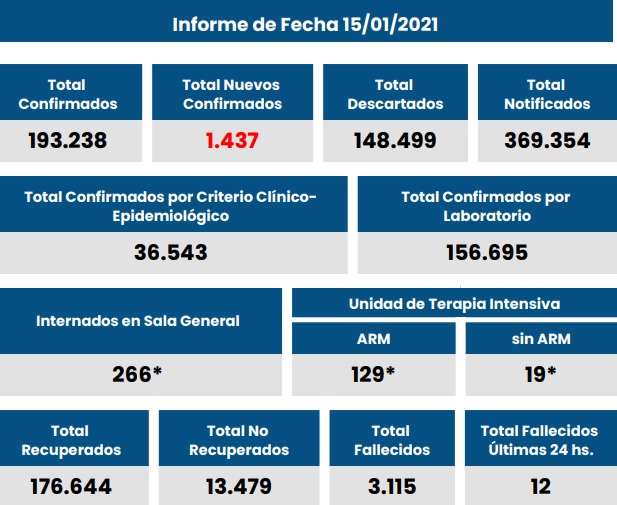 2021-01-15_Parte_MSSF_CoronavirusCovid-19: Provincia Santa Fe informó 1.437 nuevos casos y 12 fallecidos