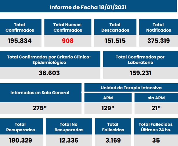 2021-01-18_Parte_MSSF_CoronavirusCovid-19: Provincia Santa Fe informó 908 nuevos casos y 35 fallecidos