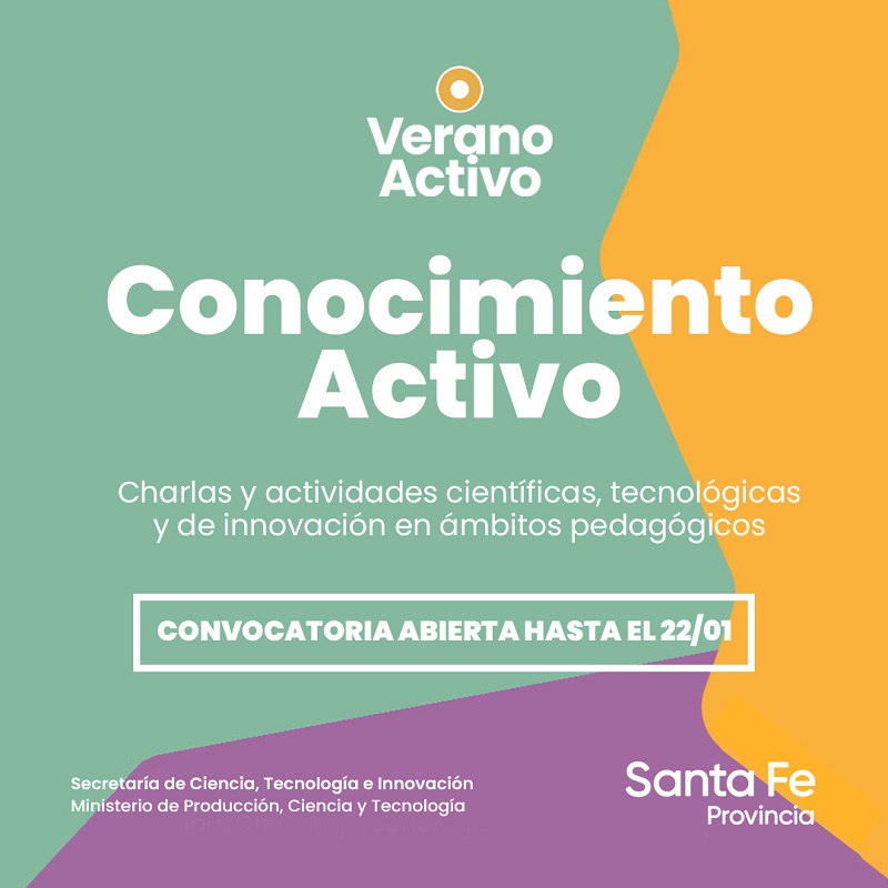 En el marco del dispositivo “Verano Activo”, lanzado por el Ministerio de Educación de la provincia, desde la Secretaría de Ciencia, Tecnología e Innovación del Ministerio de Producción, Ciencia y Tecnología las y los invitamos a participar de “Conocimiento Activo”.