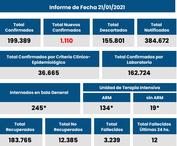 2021-01-21_Parte_MSSF_CoronavirusCovid-19: Provincia Santa Fe informó 1.110 nuevos casos y 12 fallecidos