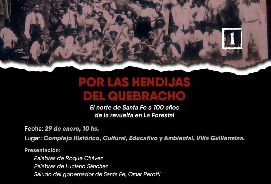 La apertura estará a cargo del exintendente de la comuna de Villa Guillermina, Roque Chávez y de su esposa, la actual jefa comunal Nanci Ávalos. Ambos son parte de los organizadores del Encuentro por la Memoria que impulsaron una serie de actividades el año pasado para llegar a la etapa de las conmemoraciones a partir del centenario. El despliegue busca ir más allá de la evocación y analizar con distintos protagonistas cómo ha sido y será la vida de los pueblos forestales que fueron epicentro de la revuelta y durante décadas afrontaron las consecuencias de la partida de la empresa y el riesgo de transformarse en pueblos fantasmas.