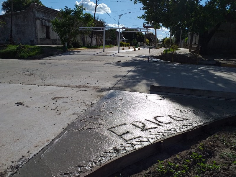 Un grupo de personas provocaron daños en el hormigón recién ejecutado en calle 13 y esquina 14 de la ciudad tosquense. Son las famosas escrituras de nombres que hacen cuando el cemento aún está húmedo.