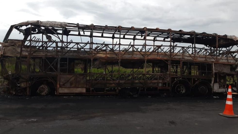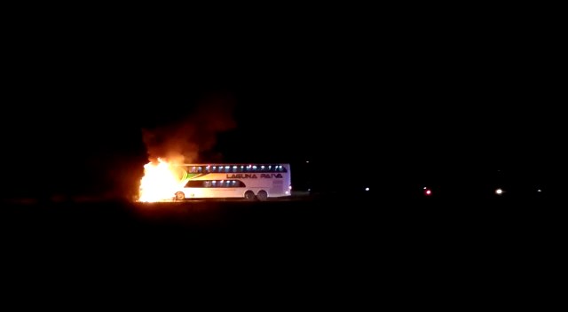 Momentos límites vivieron los uniformados que iban en el colectivo, que tuvieron que saltar por las ventanillas para alejarse del peligro.
