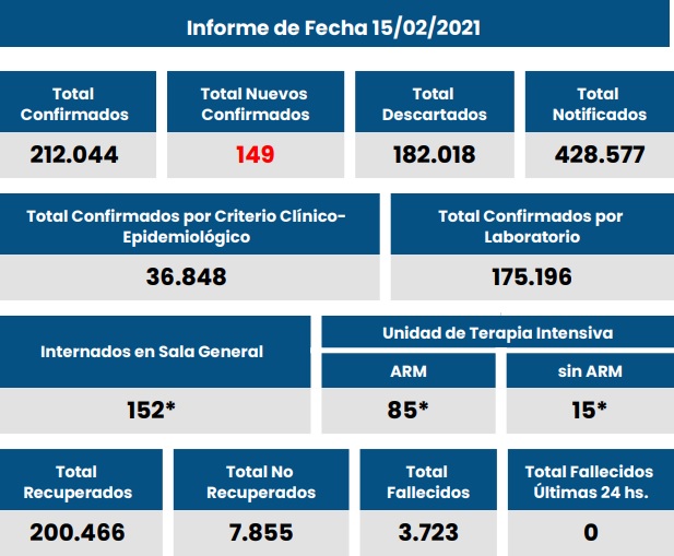 2021-02-15_Parte_MSSF_CoronavirusCovid-19: Provincia Santa Fe informó 149 nuevos casos y ningún fallecido