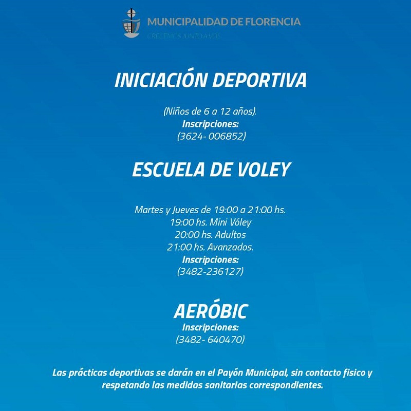 La Secretaría de Cultura, Educación y Deporte informa que ya están abiertas las inscripciones a las actividades deportivas 2021, las cuales son totalmente libres y gratuitas.