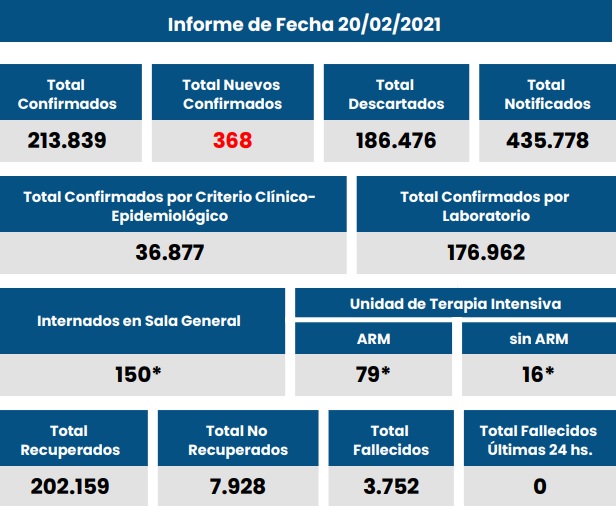 2021-02-20_Parte_MSSF_CoronavirusCovid-19: Provincia Santa Fe informó 368 nuevos casos y ningún fallecido
