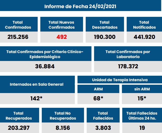 2021-02-24_Parte_MSSF_Coronavirus (1)Covid-19: Provincia Santa Fe informó 492 nuevos casos y 19 fallecidos