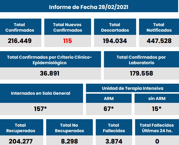 Covid-19: Provincia Santa Fe informó 115 nuevos casos y ningún fallecido horacio hace 5 años 2021-02-28_Parte_MSSF_Coronavirus