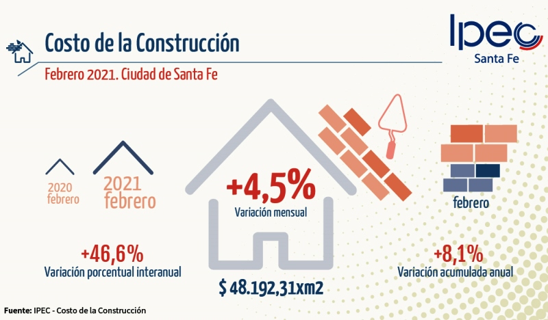 El Instituto Provincial de Estadítica y Censos publicó el informe: Costo de la Construcción de la ciudad de Santa Fe, correspondiente a febrero de 2021.