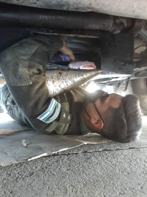 Al momento de la requisa de la camioneta, las y los uniformados detectaron que, escondidos en el sector del chasis, había paquetes rectangulares con gran cantidad de una sustancia blancuzca. De esta manera y luego de efectuarles la correspondiente prueba de orientación, ésta arrojó resultado positivo para cocaína.