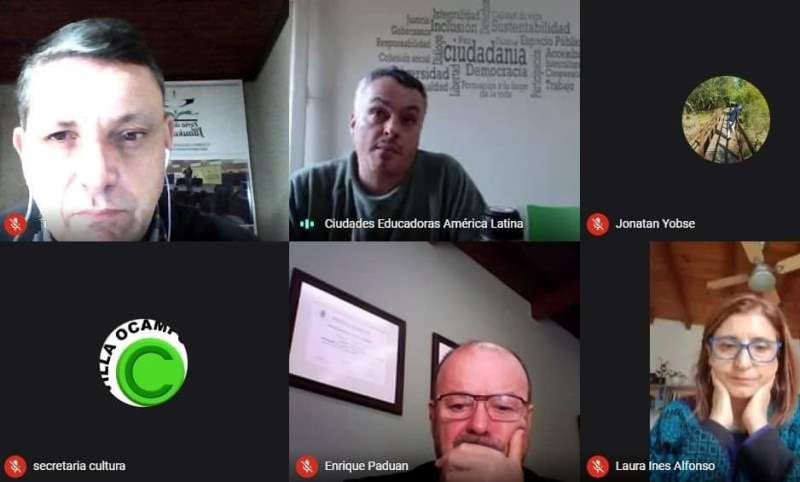 El intendente Enrique Paduán, junto a integrantes de su equipo de gestión, mantuvieron una reunión virtual con Laura Alfonso, directora de la Delegación América Latina de la Asociación Internacional de Ciudades Educadoras; y Esteban Paulón, director ejecutivo del Instituto de Políticas Públicas LGTB+, quienes explicaron los objetivos de esta organización sin fines de lucro.