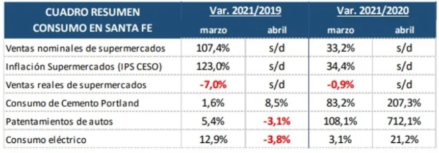 «La reactivación se enfrenta a la segunda ola» es la frase que resume el presente del consumo masivo en la provincia de Santa Fe, y titula un estudio económico al respecto. Es que los indicadores de la economía habían surfeado el primer trimestre del año con viento en popa, recuperando posiciones a niveles de pre pandemia; pero el rebrote de contagios masivos que llegó finalmente al país le puso un freno evidente a esa recuperación. La conclusión que explica esto es el deterioro del poder adquisitivo de la población.