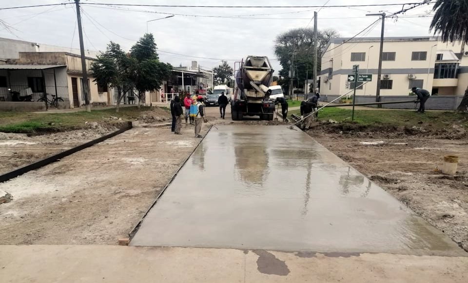 Esta tarea se realiza con hormigón elaborado para subsanar el deterioro sufrido en el pavimento flexible construido por la empresa ICA S.R.L.; sin tener respuesta hasta el momento por parte del Gobierno Provincial para que se la intime a finalizar la obra.